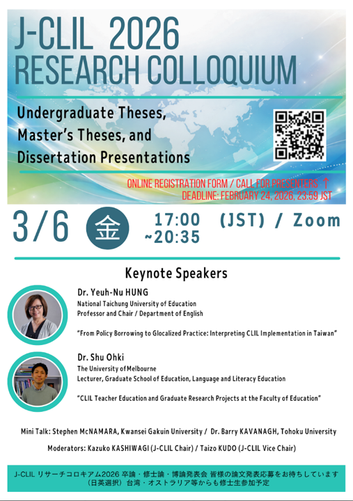 J-CLIL 2026 Research Colloquium: Undergraduate Theses, Master's Theses, and Dissertation Presentations